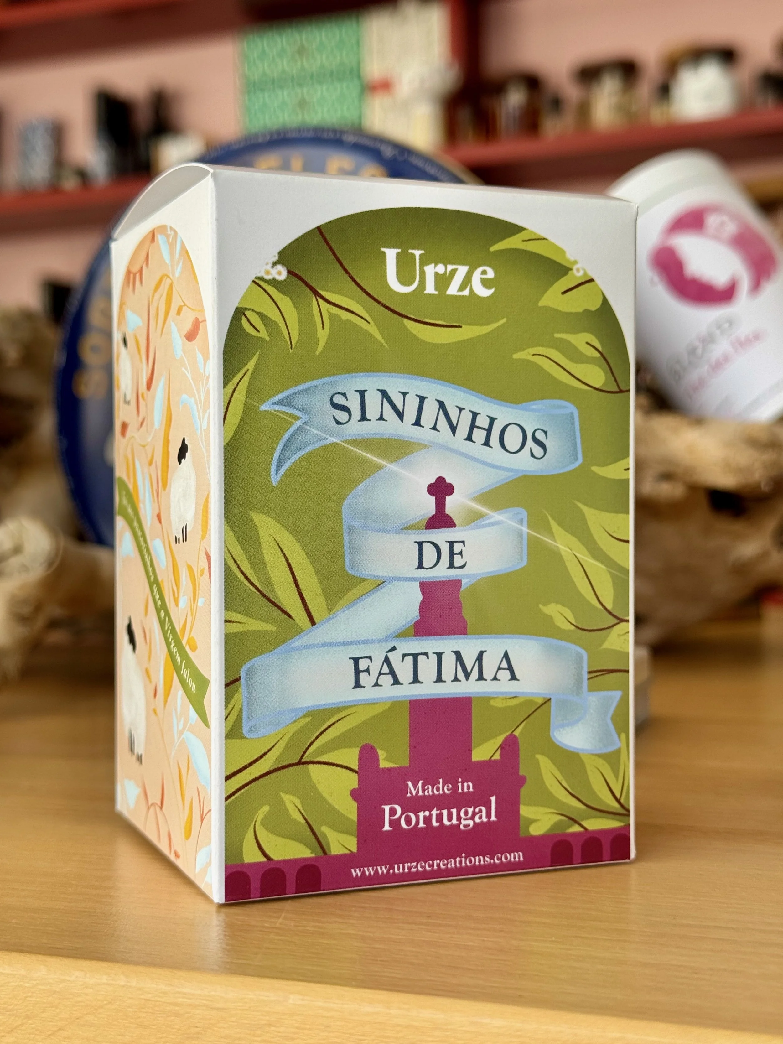 Todos os produtos da Urze Creations foram idealizados por uma designer local, que ilustrou as caixas e as produziu numa gráfica da região. Cada terç-u-bom e Sininho de Fátima é feito à mão em Fátima, com tempo, cuidado e muito amor.